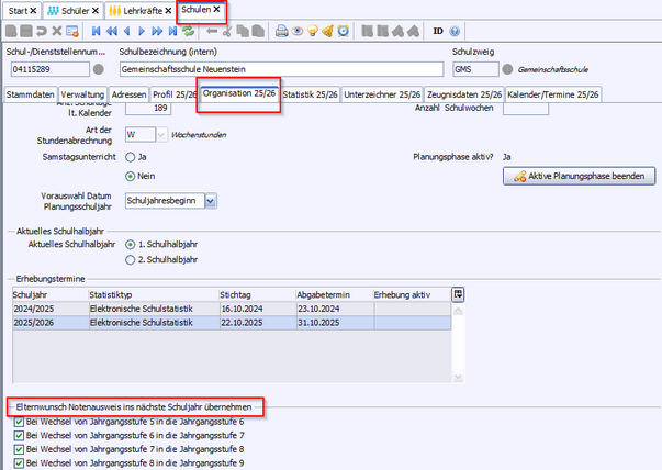 Eine Änderung des Profilfachs in der Fächerwahl wird nicht in die Schülerlaufbahn übernommen, muss dort auch geändert werden.
