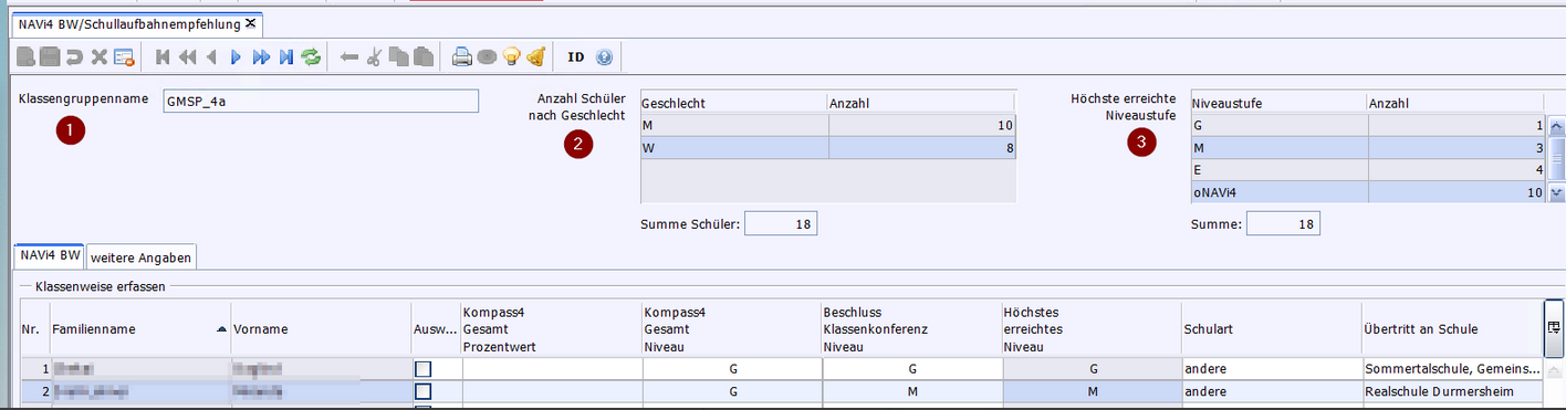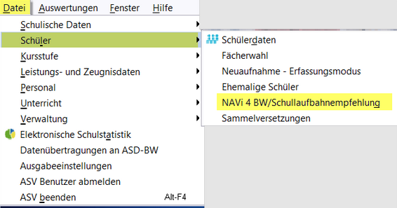 NAVi4 BW unter Datei > Schüler > NAVi4 BW/ Schullaufbahnempfehlung.